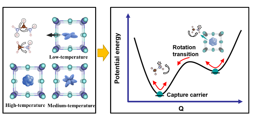 随着能源危机日益加剧,开发绿色可持续的能源技术显得尤为重要。基于卤化锡的有机无机杂化钙钛矿太阳能电池是目前最具潜力的光伏技术之一。但是,钙钛矿太阳能电池的光电转换效率仍然受到材料缺陷导致的非辐射复合过程的影响,而有机无机杂化钙钛矿中旋转A位阳离子的功能性也不甚清楚。因此,揭示隐藏在缺陷背后的微观结构及其动态变化,有助于我们重新评估钙钛矿中有机缺陷的作用,并提高钙钛矿太阳能电池的性能。