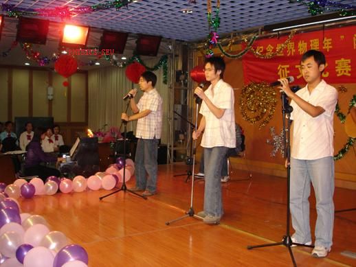 校党委刘波副书记还做了即席讲话,她对全校同学寄予厚望:新的世纪,新的挑战,希望广大同学能够乘着“世界物理年”的东风,勤奋学习、学好物理、用好物理,真正掌握这一科学研究的利器,在追求科学的征程中有所作为。大力弘扬我国载人航天的伟大精神,为我国现代化的建设,为我国小康社会、和谐社会的建设,贡献自己的力量,开创物理学新的纪元。