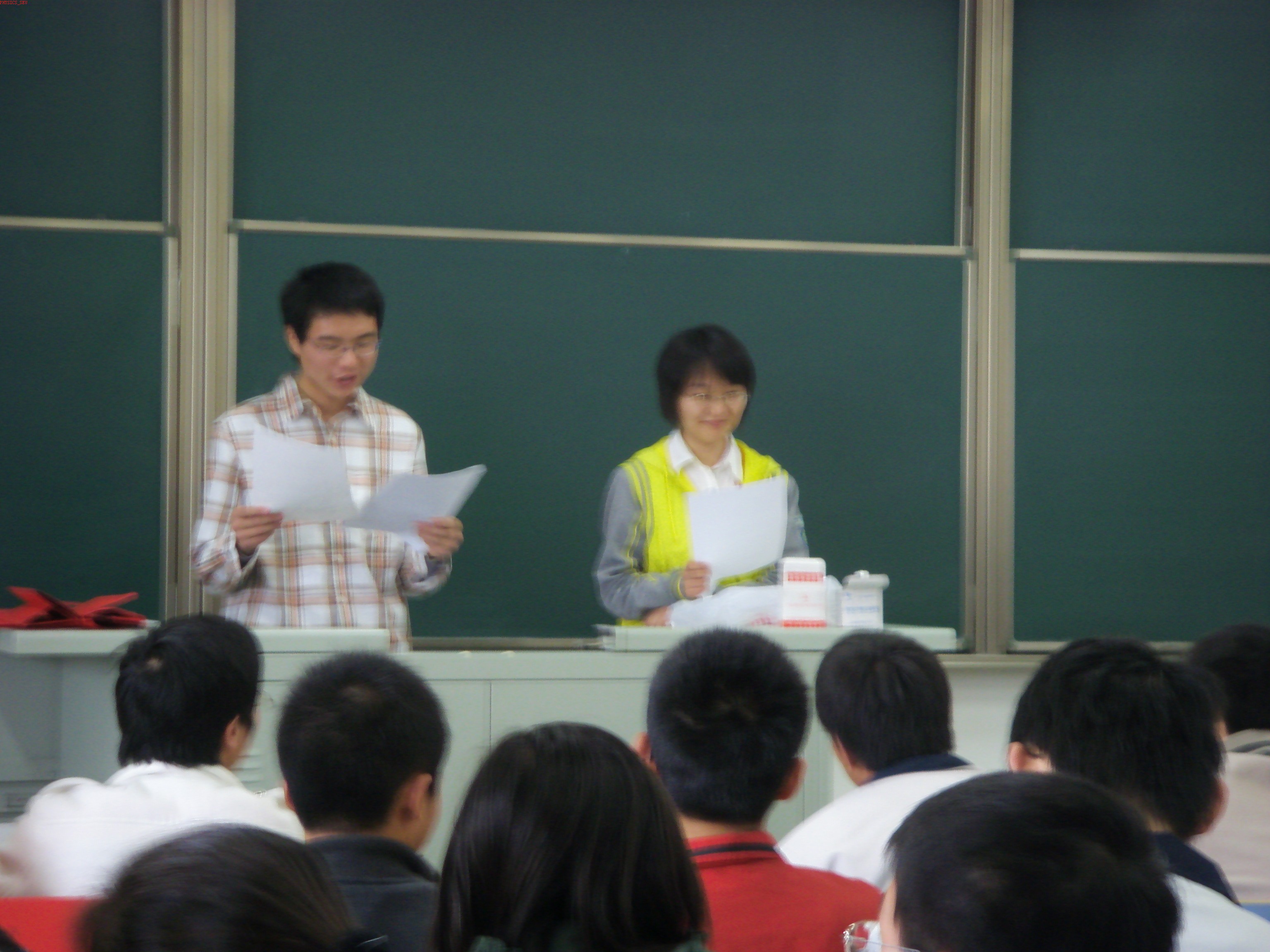 上午9:00,同学们早早进入会场,由两位主持人拉开了本次竞赛的序幕。经过激烈角逐,100071班荣获一等奖,101062班,102061班,101062班获得二等奖。其间还穿插了与观众互动的环节,参赛选手情景表演环节,现场气氛热烈,充分调动了同学们参与的积极性。