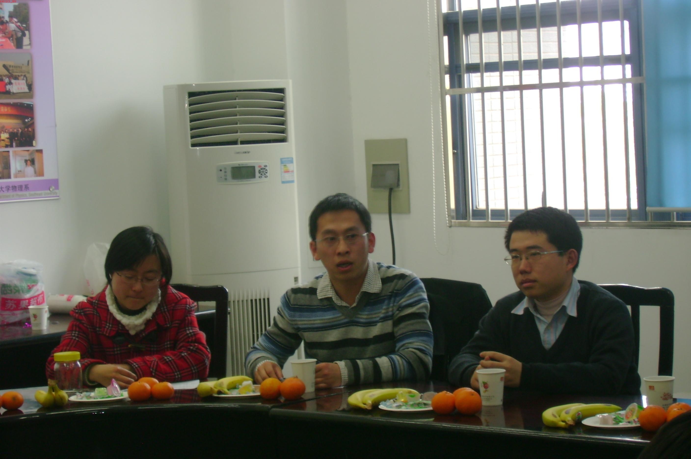 首先,两个支部相互简单地介绍了自己支部的情况。会上物理系党委副书记章荣琦老师作发言指出,机关党支部与基层党支部结对共建是我们学校党委工作的创新之举,对充分发挥党的基层组织在各项工作中的战斗堡垒作用意义深远。并切实要求物理系研究生第二党支部在与校团委党支部结对共建中虚心向团委的领导老师学习,努力把研究生党支部的各项工作做实做牢,积极配合校团委党支部的各项活动开展工作。章书记对我系研究生就业一直非常关心并倾注了很大的精力。章书记强调以人为本,关注民生是我们党的执政理念,而研究生的就业问题是民生之本的重要体现。学生就业是对学校教育质量评价的纬度之一,也是学校“以人为本,建设和谐校园”的很重要的组成部分。就业好坏也是内外因共同作用的结果,虽然现在看起来就业形势一年紧似一年,我们只要很好地定位,并及时做好对外部形势的了解,再积极主动地修练 好自己的本领,应该都会有个比较满意的工作。他进一步要求各位研究生首先要积极主动做好内部功,学生工作干部要积极努力为研究生做好服务,为大家提供及时顺畅的外部信息。