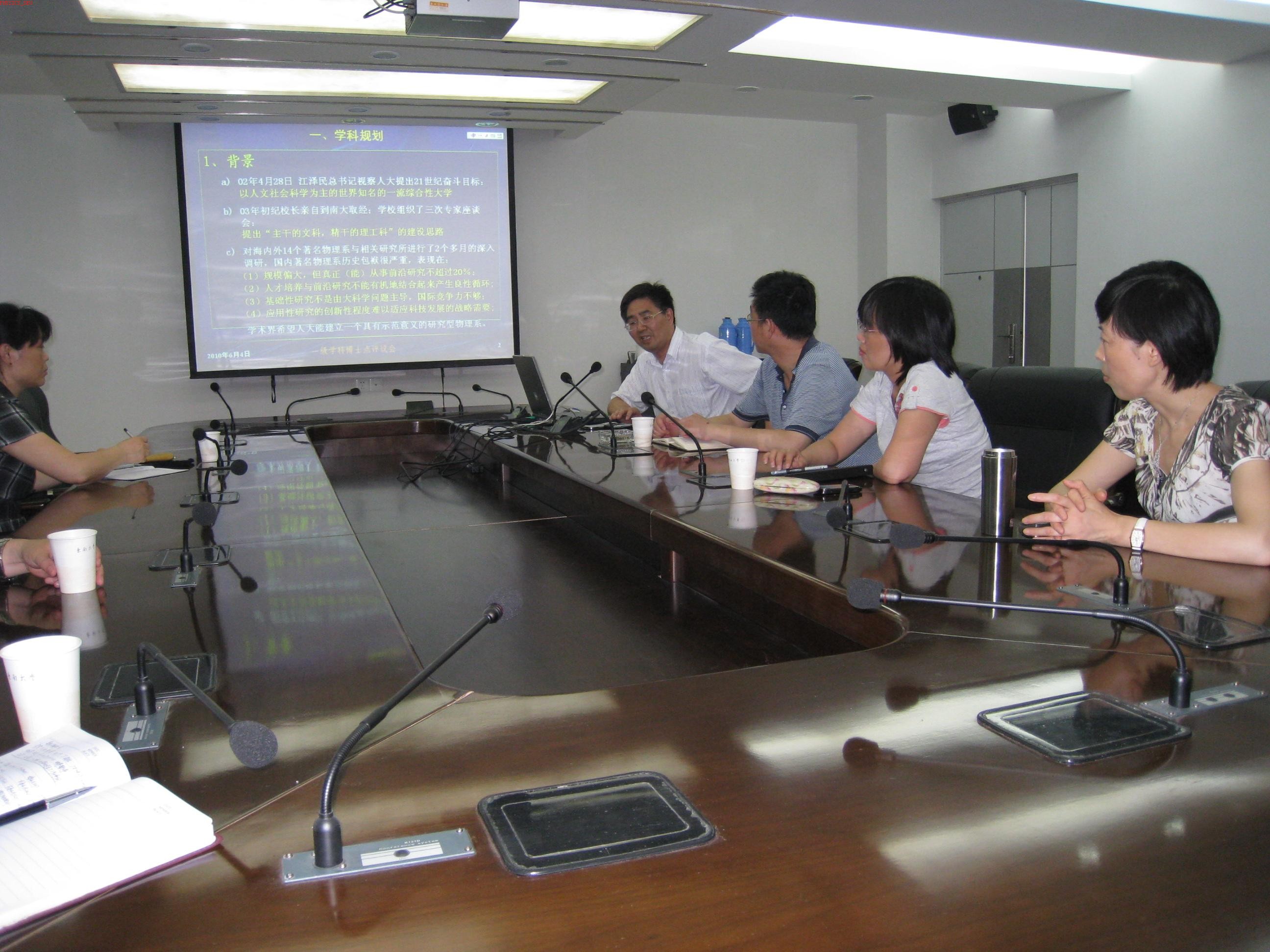 65下午,中国人民大学物理学系系主任王孝群教授应邀访问我系。我系杨永宏主任、高嵩书记等系领导及相关教师与王孝群教授亲切会谈,宾主双方就学科建设、管理制度等方面进行了深入的探讨。