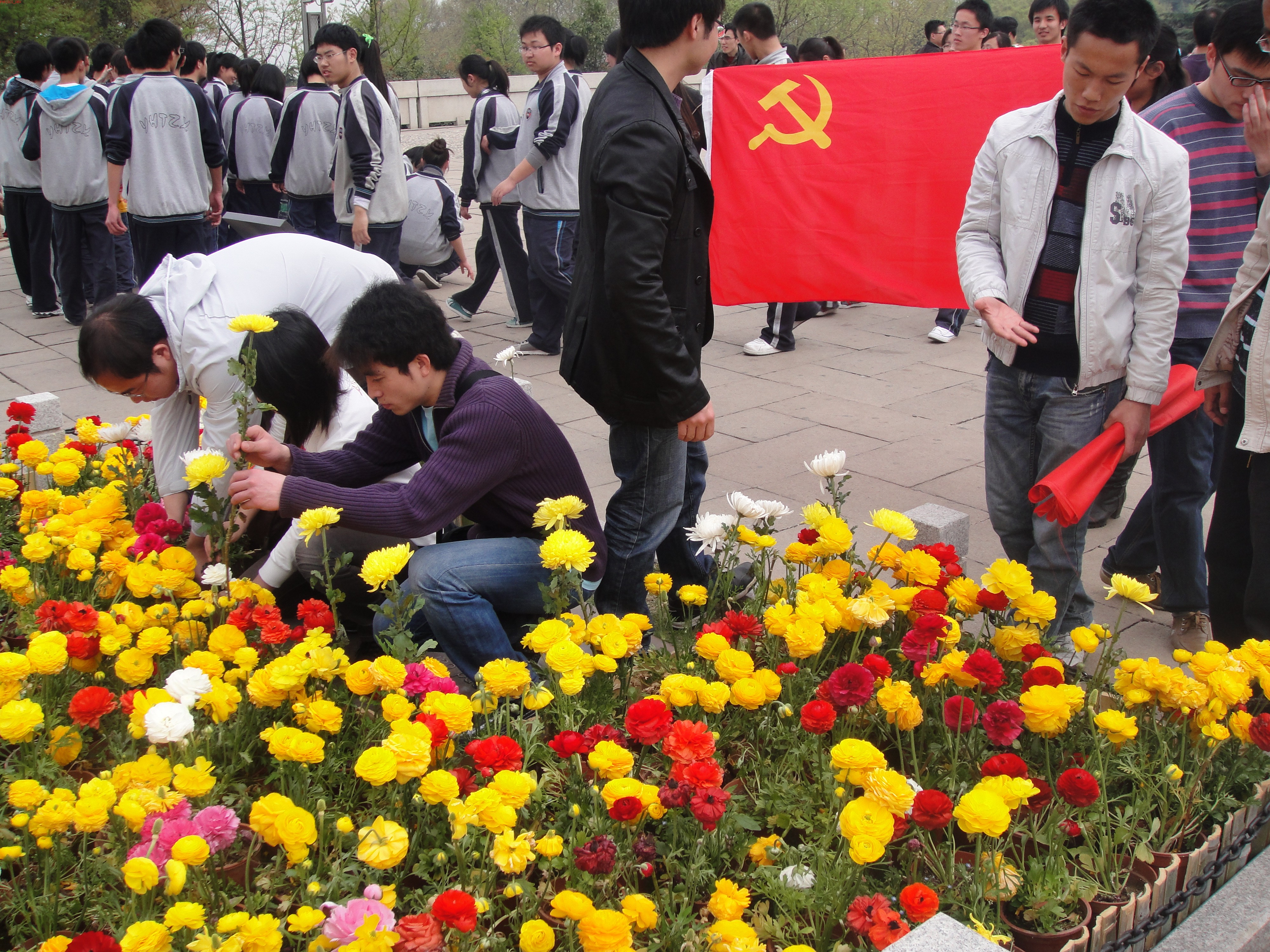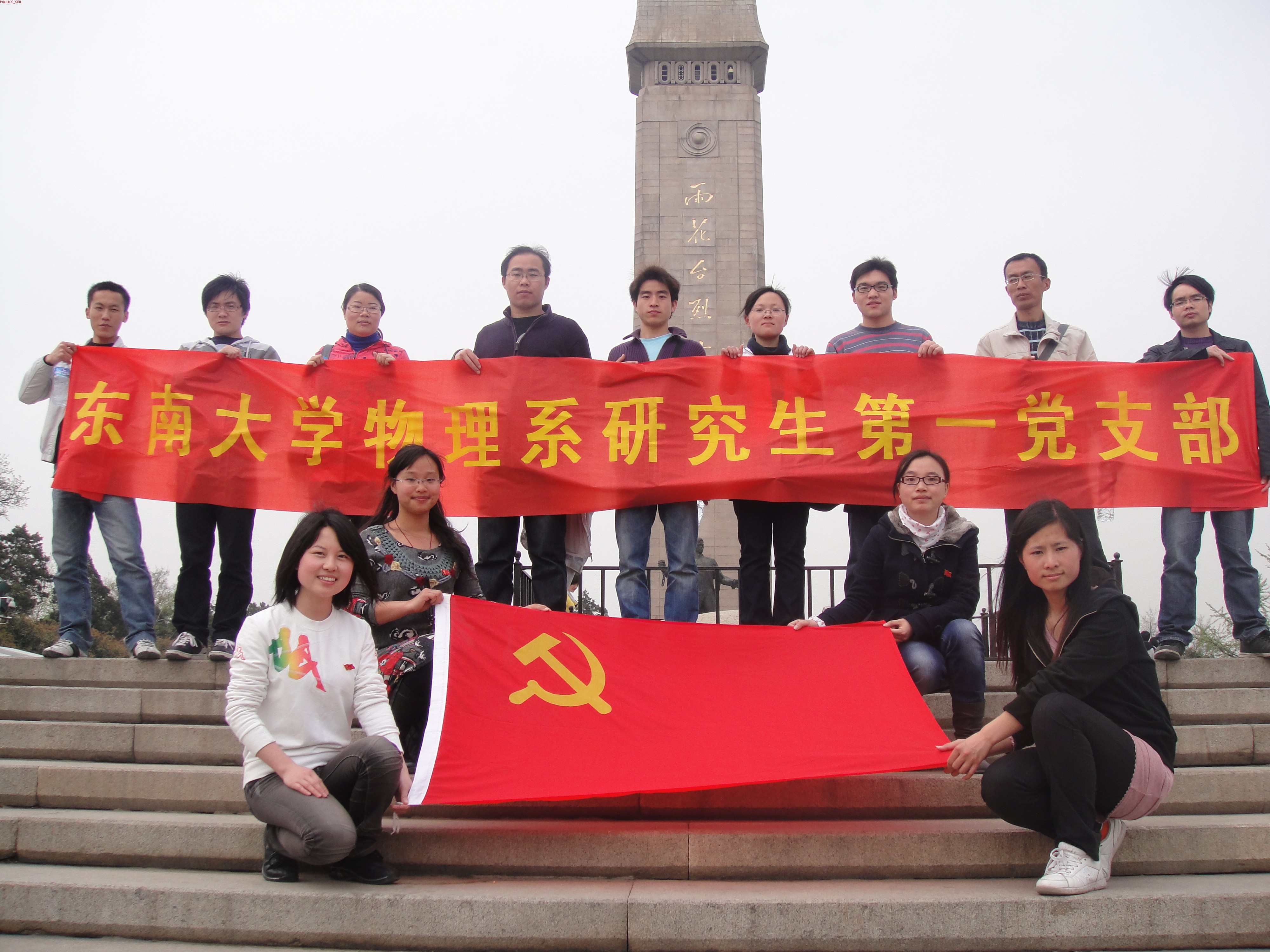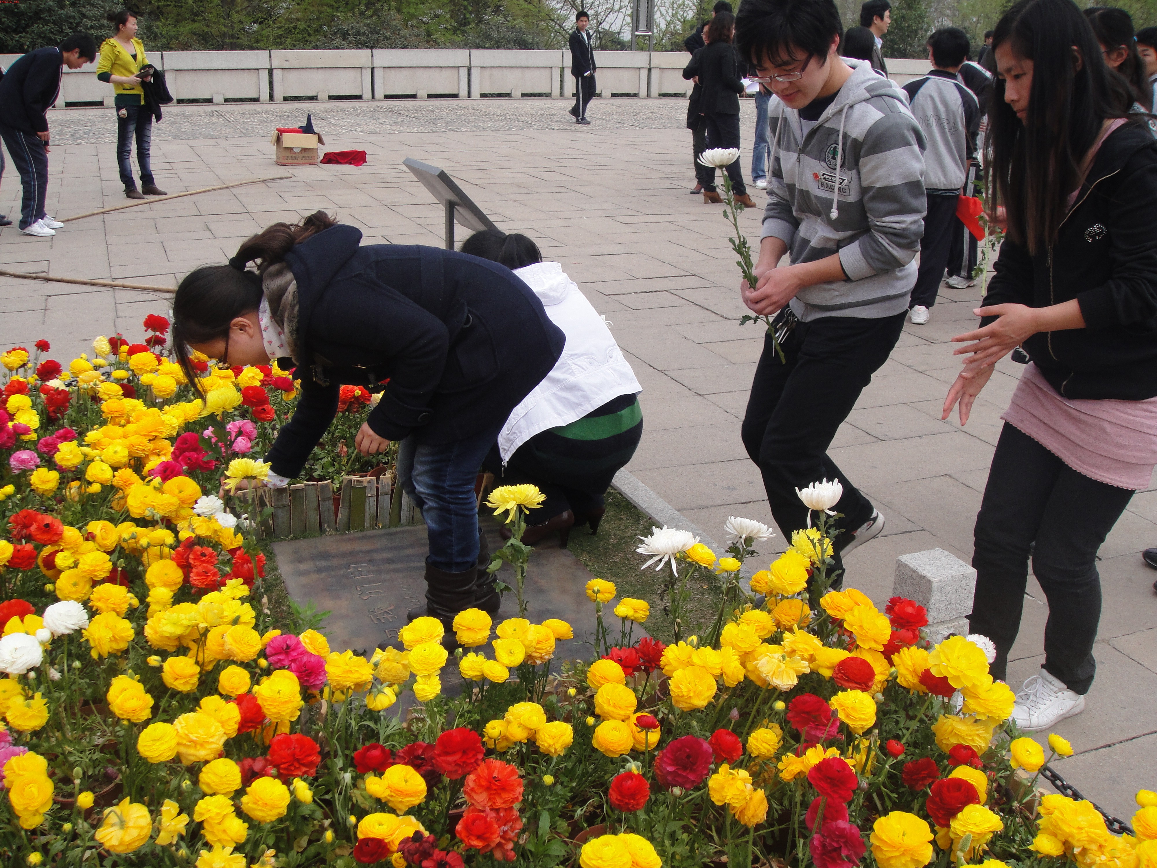 全体党员及入党积极分子于下午13时抵达雨花台烈士陵园,首先在雨花台烈士纪念碑前进行了凭吊活动。大家怀着沉痛的心情对烈士们进行了3分钟的默哀,场面庄重肃穆,随后在纪念碑前为英烈们献上鲜花并绕纪念碑一周表示凭吊。凭吊活动结束后,全体成员参观了“毛泽东纪念物展”、“红色印记”―革命花卉展及雨花石博物馆。