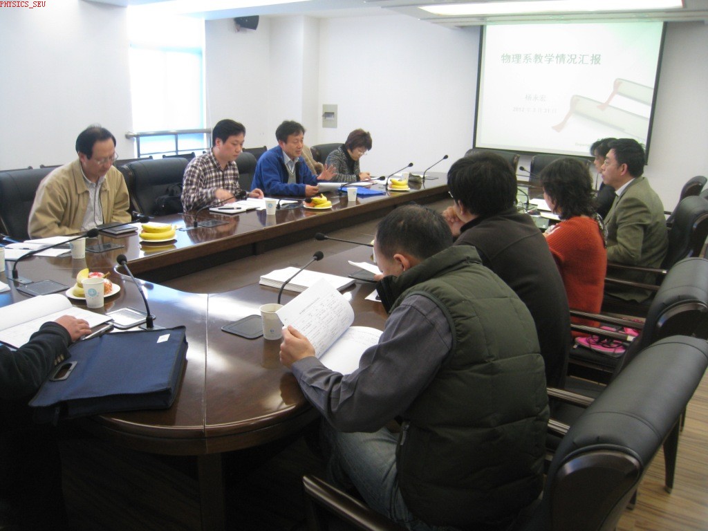工作组还就2012年本科人才培养计划的修订、研讨课的建设、双语课及全英文课的建设、实验教学及实验室建设、教学成果的培育、教学“六环节’等方面与物理系各位参会老师进行了热烈的沟通与交流。在此基础上,对我系的教学工作提出了高瞻远瞩的指导性意见,并对实际工作中遇到的困难给出了有效的解决方案。此次学校组织的调研工作将会进一步推动我系的教学改革和促进我系教学的可持续发展。
