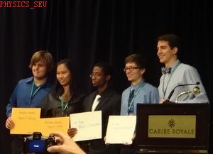 会议期间,参会的六位同学先是随行参观了肯尼迪宇航中心,而后又聆听了由诺贝尔奖得主、物理各领域的著名专家学者的演讲,参与了以“连接世界”为主题的多个研讨会,与美国大学生进行了广泛的交流。而后,我系刘雨露同学所做的海报获得Honorable Mention奖(参加海报评奖总人数为194人,获奖总人数为5人)。