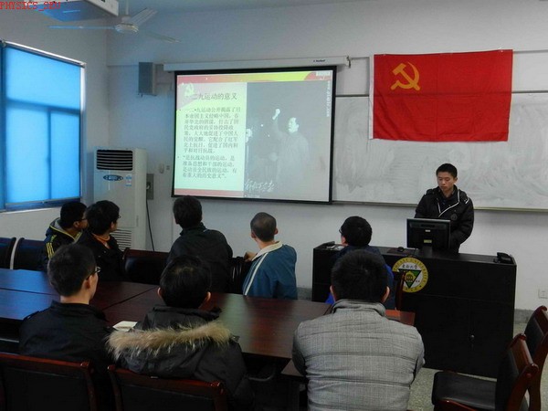 预备党员代表,已免研并被选为2013年流动助教的罗正位同学用丰富的图片回顾了“一二・九”爱国运动的历史场景,2012级研究生班班长葛晓鹏同学从马列主义传入中国直至共产党带领中国人民建设了一个欣欣向荣的社会主义国家,以长段的历史脉络抒发了对党的认识和看法;2009级刘鹤佳同学也从分析外国教授的客观评价表达了对党的领导和国家发展的信心,其他预备党员也一同就青年学生的使命,如何看待党面临的问题交流了看法。裴书记在活动最后要求大家自觉加强理论武装,特别是认真学习领会十八大精神,在各方面发挥好模范带头作用。