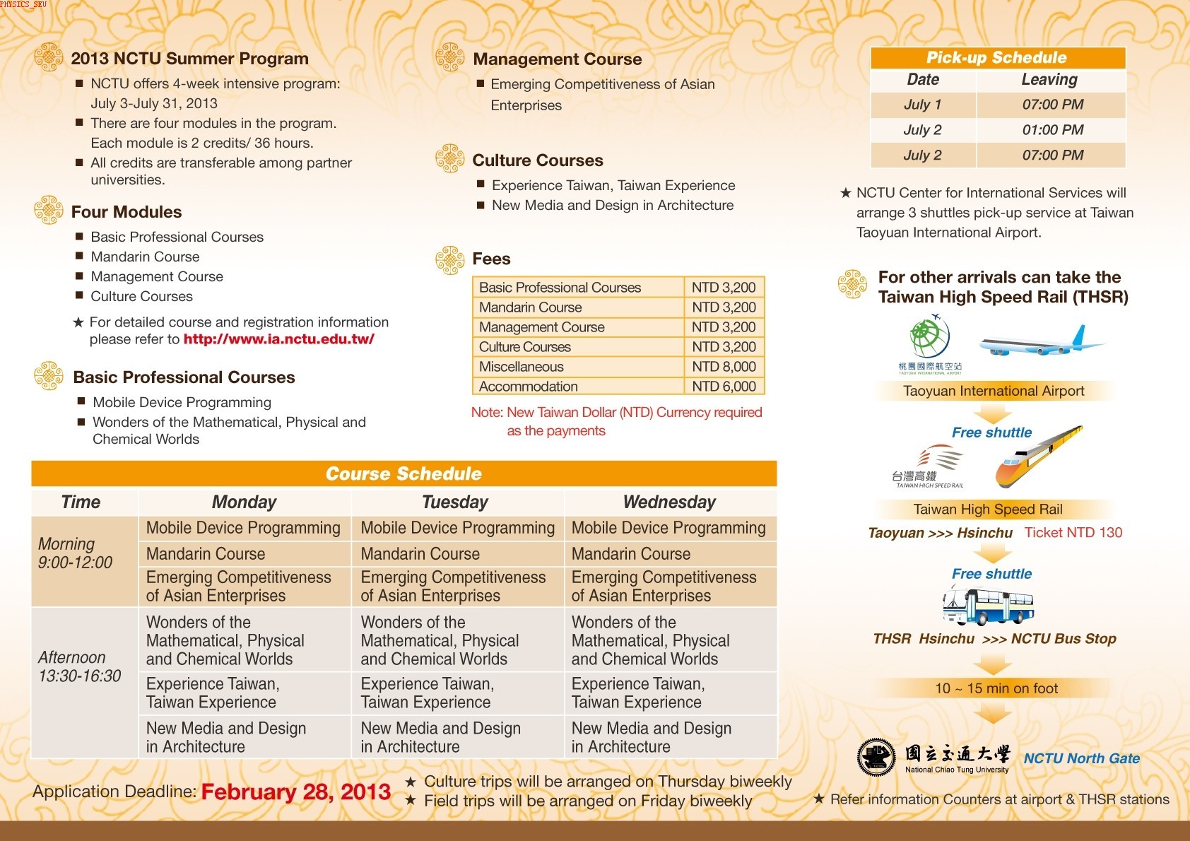 附件一: 2013年暑假台湾国立交通大学暑期学习项目
