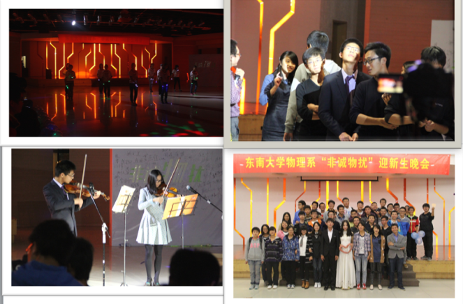 112日周日晚七点,2014年物理系“非诚物扰”迎新生晚会在圆形报告厅二楼如期举行。物理系辅导员罗正位及全体大一新生、部分大二大三学生参加了本次晚会。晚会独具特色,展示了我系学生多才多艺的一面,为每个人提供了展现自我的机会,使新生能够窥见不同以往的大学的生活、学习方式。