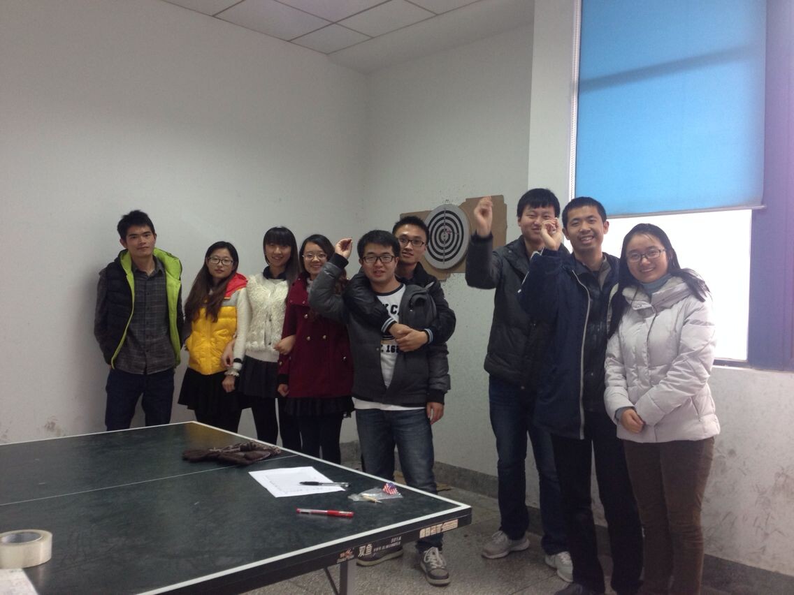 下午3点,参赛队员陆续到达比赛地点,在进行分组名单确认完毕后,大赛随即展开。各选手陆续登场,大家都竭尽所能的求取稳定发挥,会场不时传来阵阵掌声和欢笑声;随后在范兴策同学登场后,将比赛气氛被推向了高潮,成为了第一个脱靶的选手。最终,由童一龙,朱明洁,高滨组成的小队获得了小组第一的好成绩,而童一龙,朱明洁分别荣获男单,女单冠军。