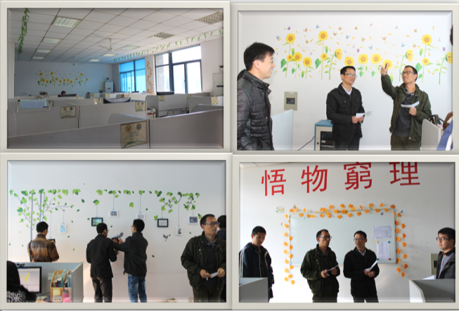 本次党日活动共分为三个部分:机房优化方案竞赛、工艺品制作竞赛以及机房优化效果竞赛。自活动开始,各个机房积极筹备优化方案;制作机房装饰工艺品;将机房进行大扫除,逐一排查机房用电安全隐患;并且购置了向日葵墙贴、创意照片墙、励志名言墙贴等进行墙面装饰,此外在机房中还添置了信息公告栏以方便信息的传达。最终四个机房形成了各自的装饰风格:物理楼研究生机房109B机房简约大方、502机房发奋励志、503机房清新活泼、504机房舒适宁静。