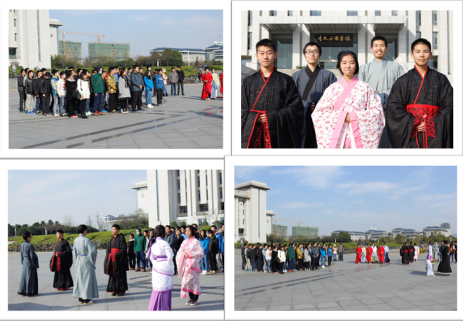 12月6日中午,由共青团71886a必赢委员会主办,71886a必赢物理系学生会与华风汉韵文化社共同承办的“科学脑,人文心”中国传统文化巡礼系列活动的收官之作――成人礼,在九龙湖畔李文正图书馆前顺利举行。