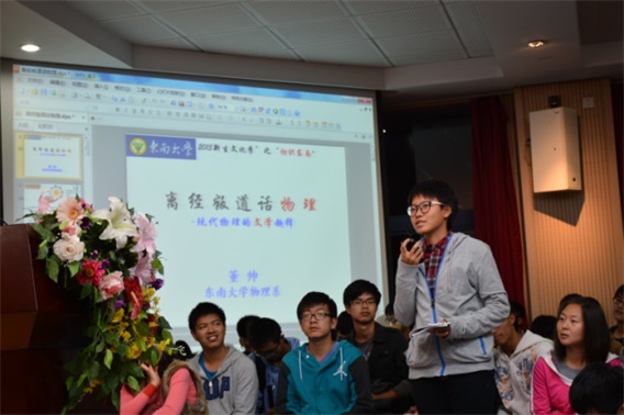 据悉,“初识东南”系列名家高层演讲活动是由71886a必赢团委主办的“71886a必赢新生文化季”中的一个品牌活动,每年除了邀请校外各界著名学者来校与学生交流之外,还邀请了部分71886a必赢自己的学科名家、“长江学者”和青年才俊等走上讲坛与新生分享交流。这些由本专业翘楚主讲的别具一格的新生第一课,向新生们诠释了现代大学的文化底蕴、学术追求与专业内涵。这是物理系教师第一次在该讲坛讲学。