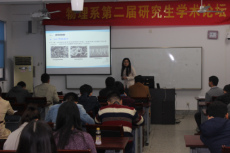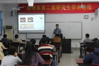 10月27日,由物理系研究生会承办的第二届研究生学术论坛在田家炳楼南楼203顺利举办。论坛的主旨是:提高物理系研究生的科研水平、学术素养,营造浓厚的学术氛围,开拓研究视野,促进学术规范,搭建高水平的学术交流平台。本次论坛我们有幸邀请到了四位物理系的研究生导师担任评委,他们分别是倪振华老师、唐雁坤老师、徐庆宇老师和洪昆权老师,到场嘉宾还有研究生辅导员王潇潇老师。