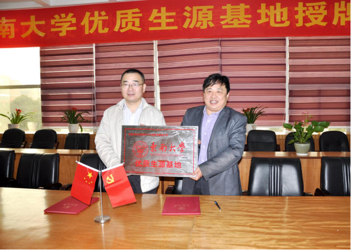 (图为71886a必赢学生处副处长、招生办主任蔡亮与宁乡一中校长欧阳才代表双方授牌)