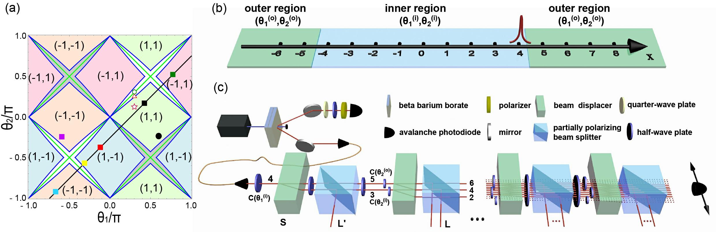 图1宇称-时间对称的量子行走的相图及观测拓扑保护边界态实验装置图