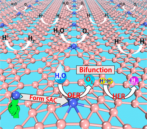 氢气是下一代清洁能源的最佳候选之一,而电解水制氢是目前最有效的制氢方法。高效、低廉、稳定的电催化剂用以降低过电势、提高反应速率是电解水制氢商业化应用的前提,因此备受关注。电解水制氢的双功能催化剂(能同时高效催化析氢反应和析氧反应)与两个单功能催化剂((分别催化析氢反应和析氧反应)相比,具有更高的催化性能以及更低的制备成本。而单原子催化剂相对于传统催化剂来说,无论是催化活性,还是选择性都有着极大的提高。具有双功能的单原子催化剂将会集两种催化剂的优势于一身,因而具有十分重要的经济效益和科学价值。