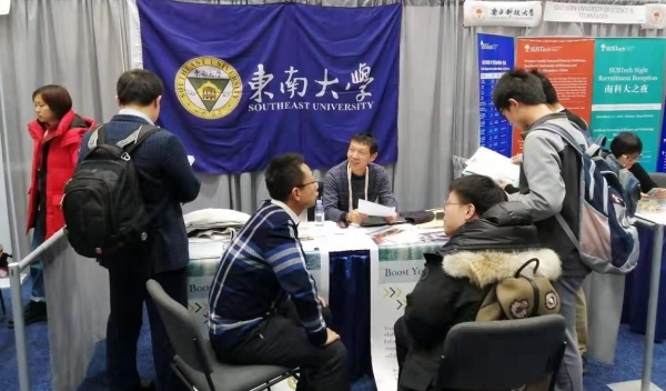 此次会议,必赢官网联合我校电子科学与工程学院、材料科学与工程学院、化学化工学院、生物科学与医学工程学院,在本次会议上开展了为期两天的人才招聘工作。招聘期间,必赢官网代表副院长董帅教授接待了二十余位对71886a必赢物理学科教职有兴趣的海外学者、学子,向他们详细介绍了71886a必赢及学院情况和招聘政策,鼓励他们尽早在合适的时机学成归国,加盟71886a必赢。招聘团还举办了一场招待宴会,宴请了波士顿地区71886a必赢校友及应聘人员。校友们欢聚一堂,共同观看了71886a必赢及各个学院的宣传片,并积极献言献策,共议学校发展大计,共祝母校明天会更好。