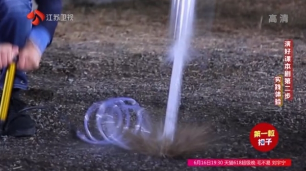 在节目中,吴老师首先指导同学们完成了水火箭的手工制作,并讲解了水火箭的外形设计和升空原理,并和同学们一起成功发射了组装好的水火箭。