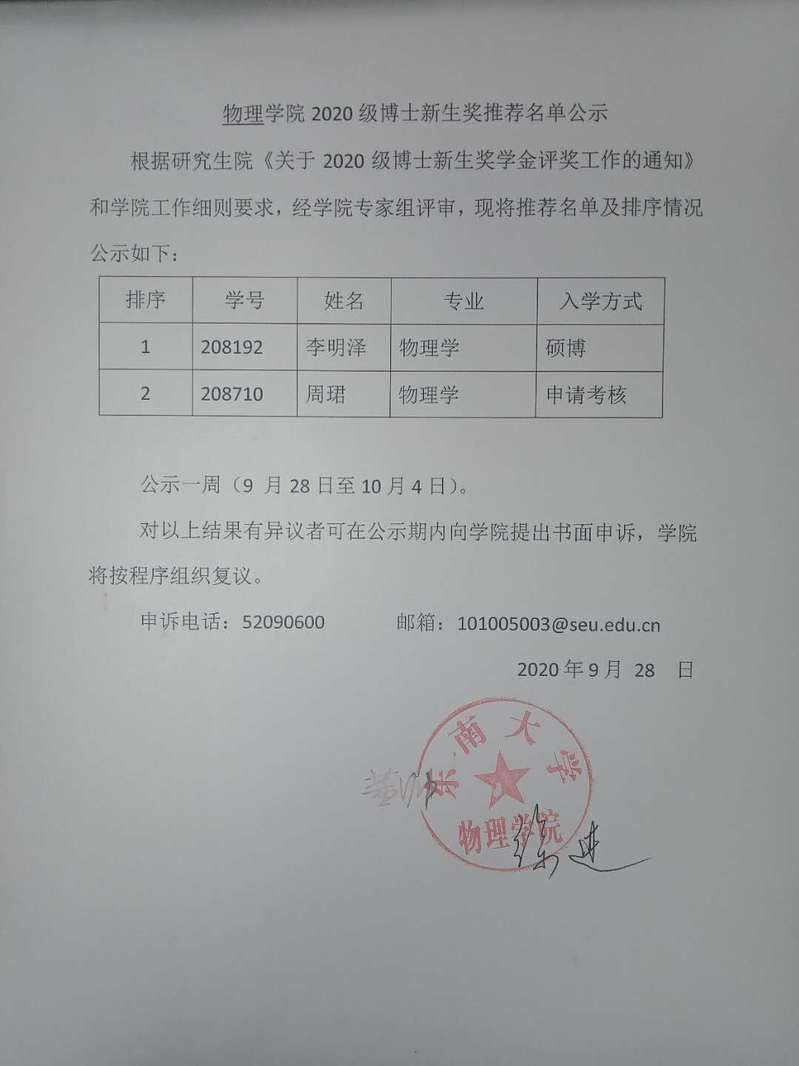 71886a必赢2020级博士新生奖推荐名单公示
