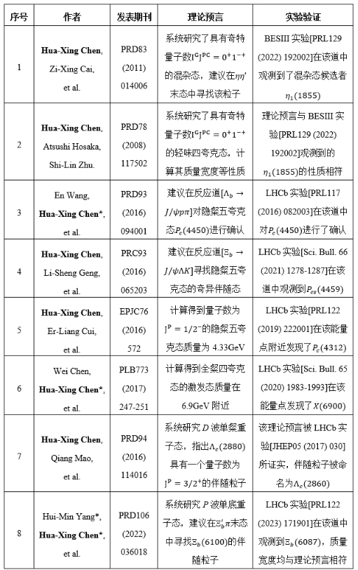 本团队在近二十年里应用QCD求和规则等理论研究方法,围绕奇特强子态和重味重子态开展理论研究工作:通过系统分析它们各种可能的内部结构,改进了QCD求和规则方法,使之更适用于开展相关的理论计算;在此基础上分析了轻标量介子和Pc(4312)等十余个奇特强子态的结构、质量、自旋宇称和衰变等物理性质;应用重夸克有效理论研究了一系列单重强子态的质量谱和衰变等性质。我们的多项理论预言在后续实验中得到验证,在国际国内强子物理领域产生了一定的影响,加深了我们对于强子态内部结构的理解,为相关理论和实验研究提供了重要参考。