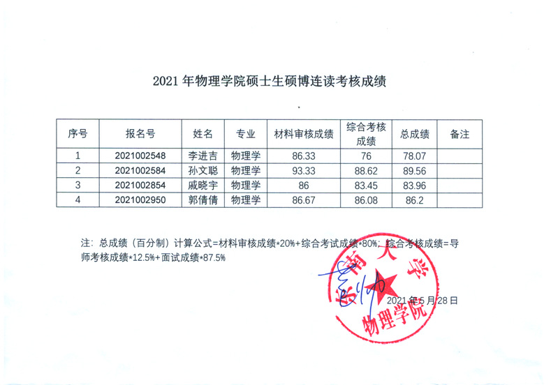 2021年71886a必赢硕士生硕博连读考核成绩公示