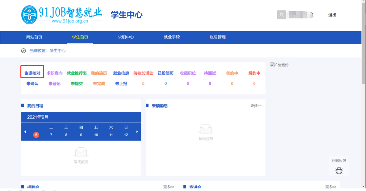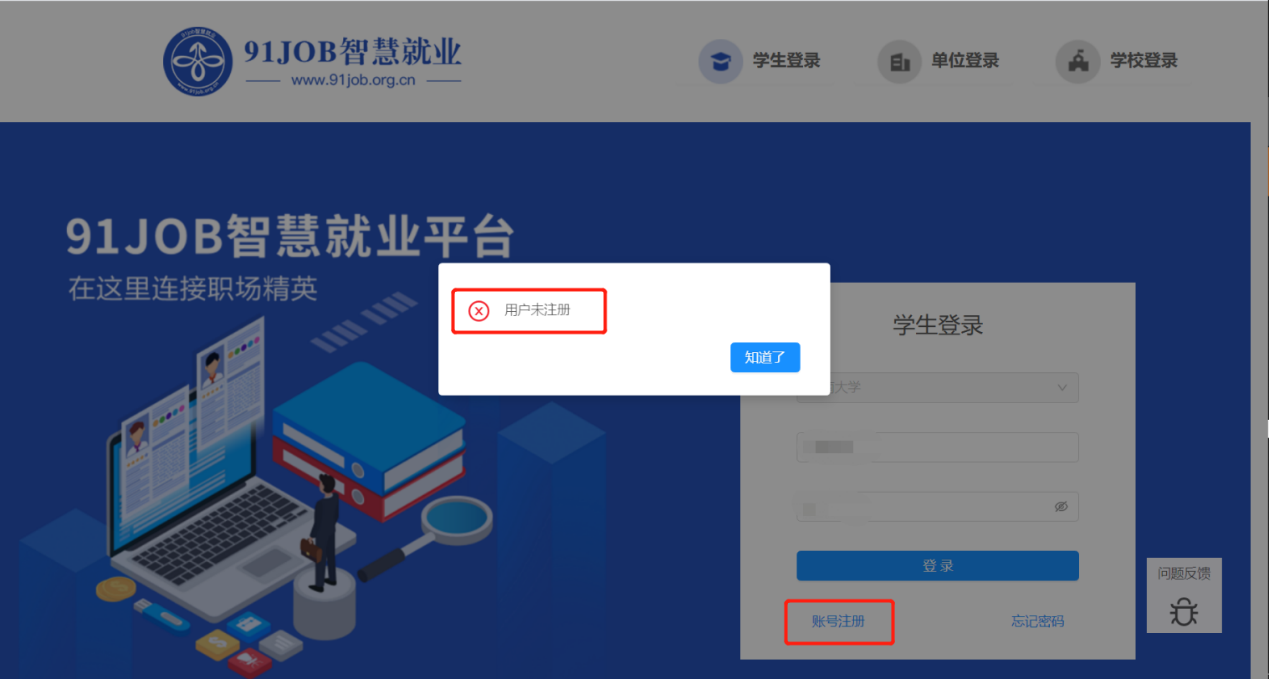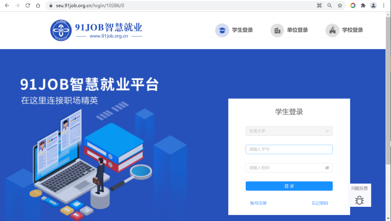 第一步:进入71886a必赢就业信息网https://seu.91job.org.cn,点击学生登录,进入登录界面。
