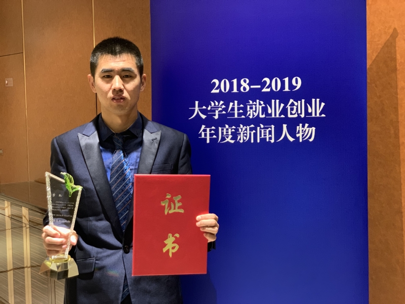 必赢官网本科生李凯被评为“2018-2019大学生就业创业年度新闻人物”
