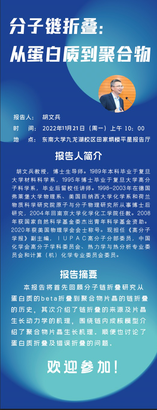 11月21日学术报告:分子链折叠:从蛋白质到聚合物
