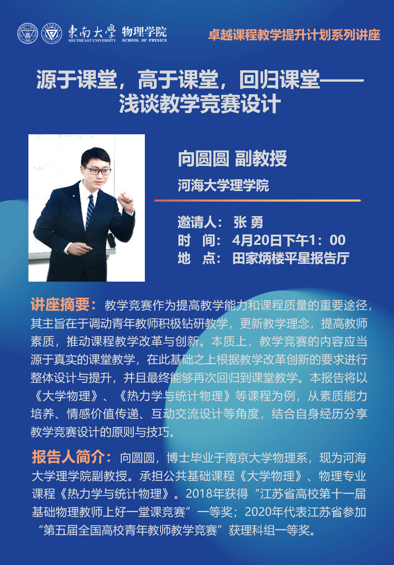 4月20日教学讲座:源于课堂高于课堂回归课堂——浅谈教学竞赛设计