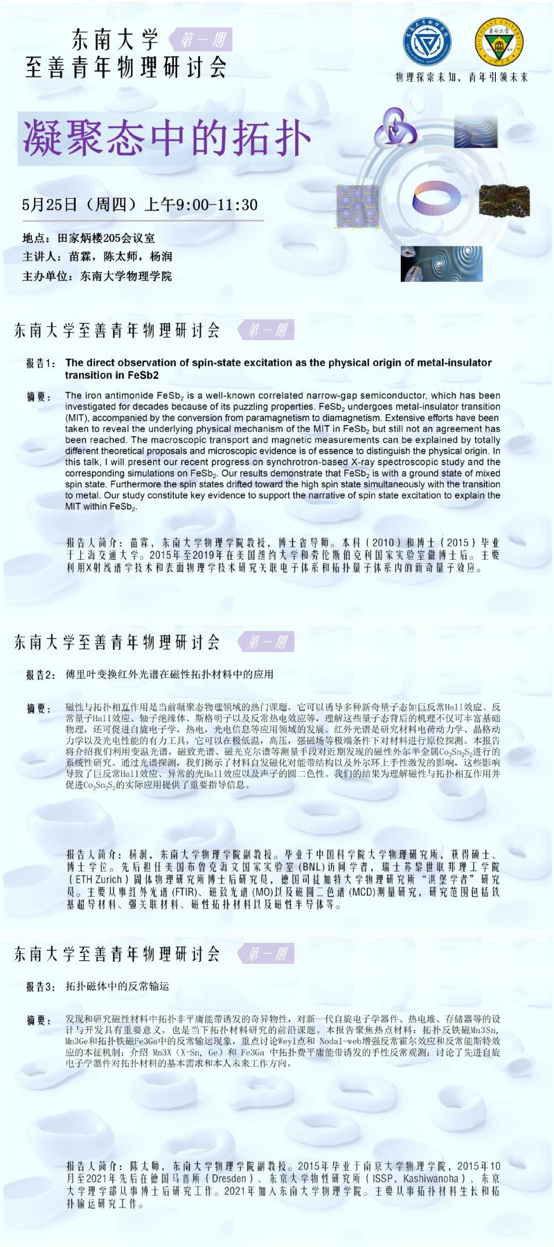 5月25日71886a必赢至善青年物理研讨会(第一期)——凝聚态中的拓扑