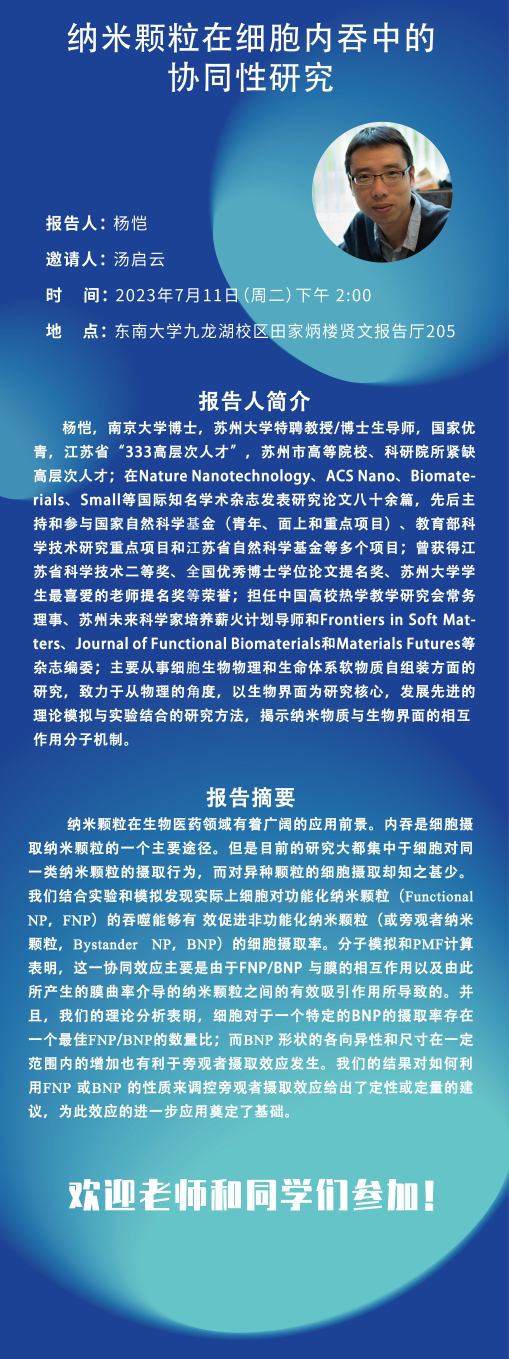 7月11日学术报告:纳米颗粒在细胞内吞中的协同性研究