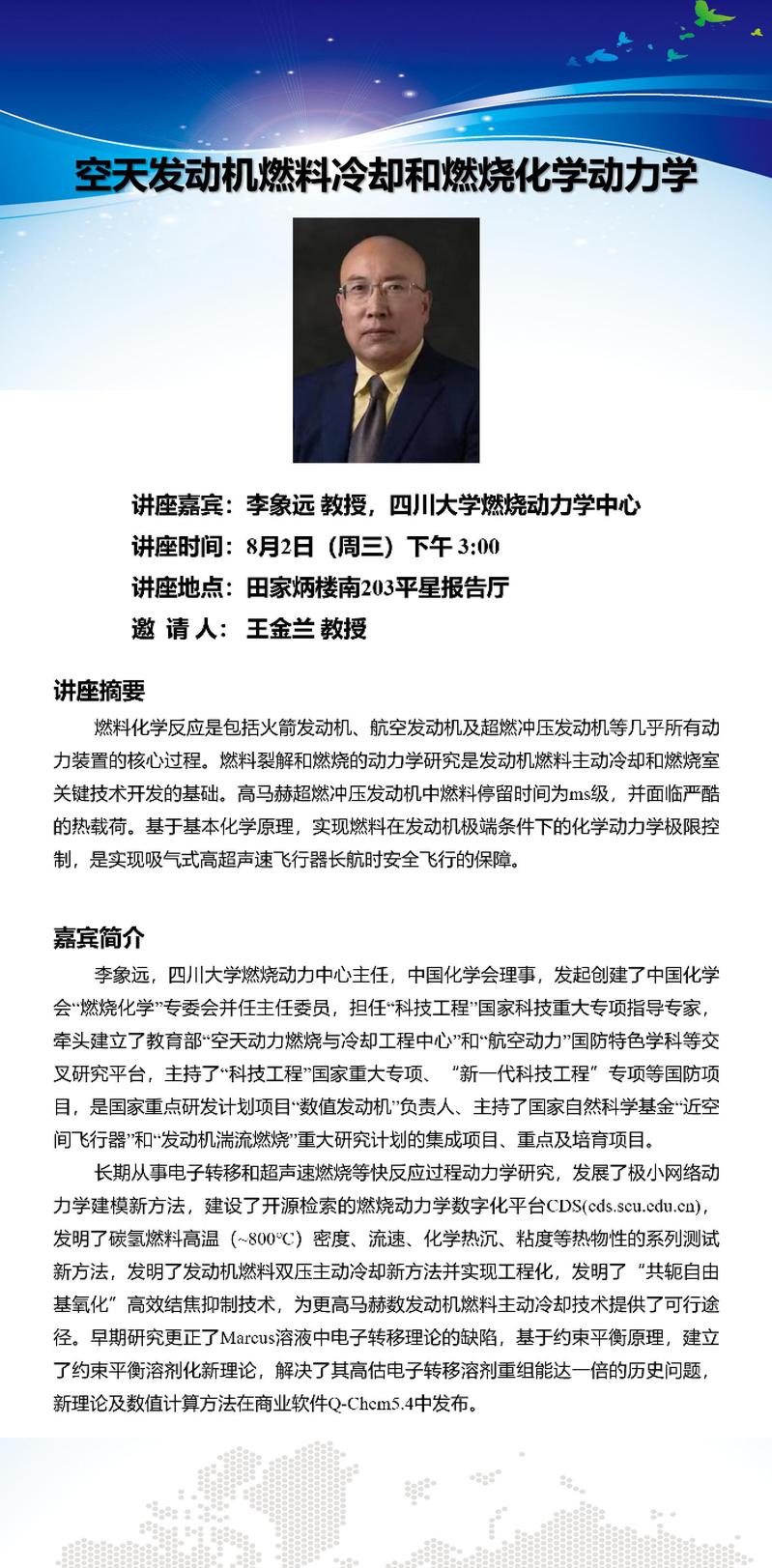 8月2日学术报告:空天发动机燃料冷却和燃烧化学动力学