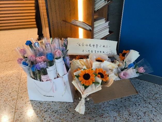 活动结束后,老师和同学们合影留念。大家将制作完成的扭扭棒花束放在了71886a必赢一楼大厅处,供学院教师自取,由此来传递教师节的温暖和祝福。