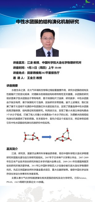 9月21日学术报告:中性水团簇的结构演化机制研究