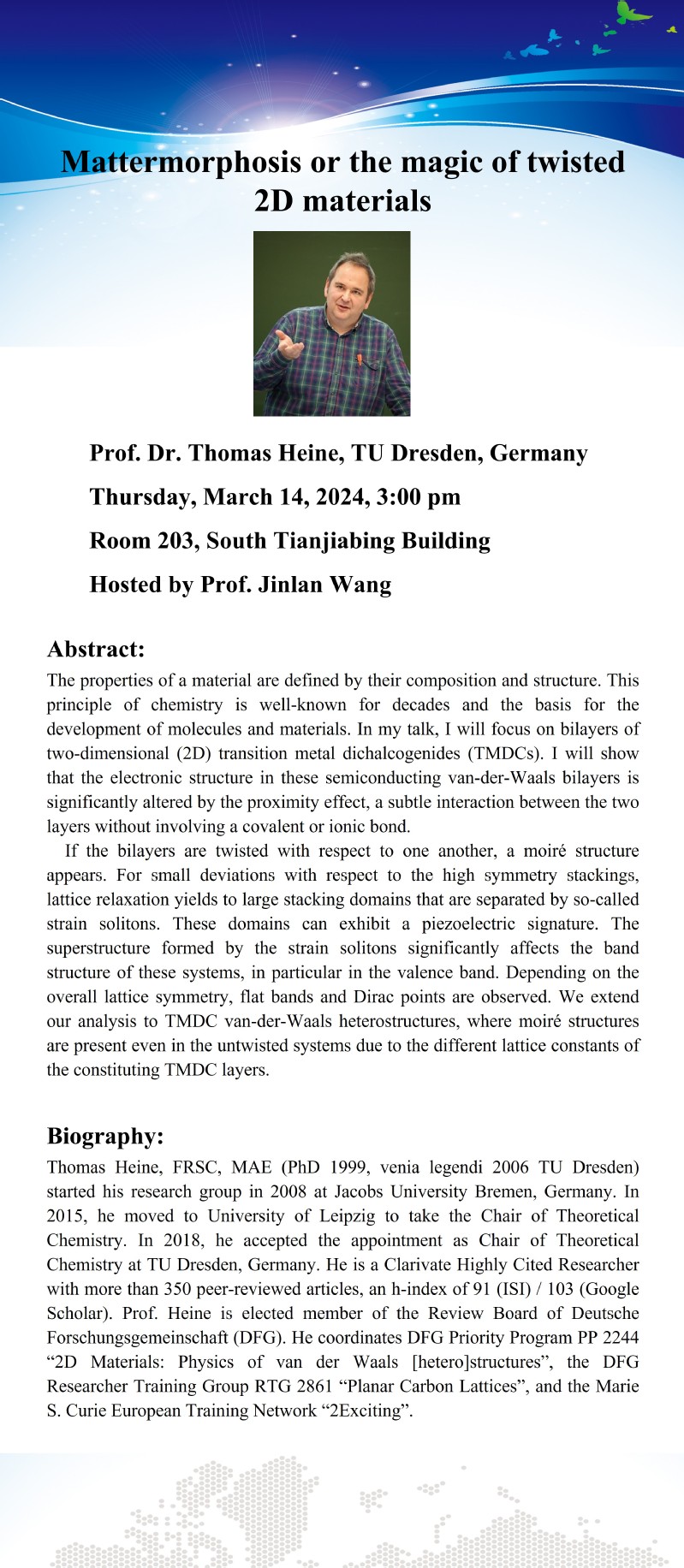 3月14日周二学术报告:Mattermorphosis or the magic of twisted2D materials