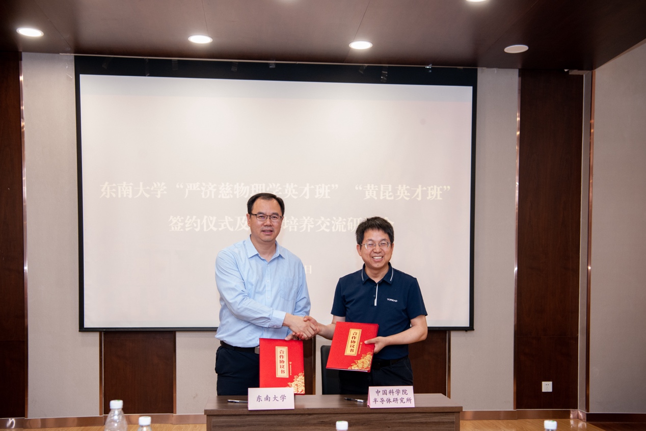 仪式结束后,中国科学院半导体所研究员邓惠雄、物理所研究员毛义元分别向同学们介绍了“黄昆英才班”和“严济慈物理学英才班”的情况,并回答了同学们的提问。双方还进一步开展了领军人才培养的专题研讨会,紧密围绕科教融合、领军人才培养、院校合作等议题进行了深入研讨。
