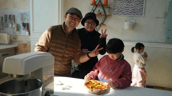 活动现场氛围欢乐融洽。在专业的烘焙教室,大厨们首先演示了披萨的制作步骤和技巧,随后,教职工和家人们便迫不及待地动手尝试起来。从揉面、铺酱、撒料到烘烤,每一个环节都充满欢声笑语。每个家庭相互学习、互相帮助,不仅掌握了披萨制作的基本技能,也增进了彼此的了解和情谊。经过一段时间的等待,一盘盘香气四溢的披萨出炉了。大家品尝着自己亲手制作的披萨,对自己和家人的劳动成果感到满意和自豪。制作披萨的袅袅烟雾缭绕升腾,勾勒出一幕幕温馨而美好的场景,如同冬日暖阳般,让大家在忙碌的工作之余,感受到了来自家的温暖和学院的关怀。