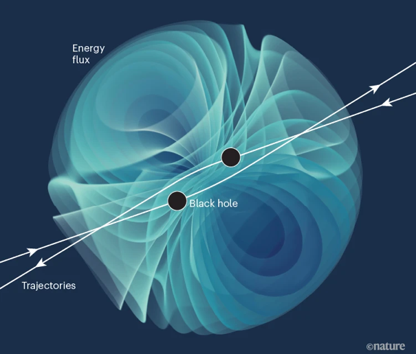 双黑洞散射过程中的能量辐射。原图作者:Mathias Driesse
