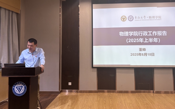 【工作总结:回顾成绩展望未来】院长董帅教授代表学院作2025年上半年行政工作报告。他指出,在全体教职工的共同努力下,学院在多个领域取得显著进展:物理学一流学科建设稳步推进;国家级科研项目申报数创历史新高;与多所国际顶尖高校建立深度合作关系;人才培养质量持续提升。董帅院长指出,面对“十五五”新发展阶段,学院将重点实施“人才强院”战略,通过外引内培打造高水平师资队伍;优化学科布局,培育新的科研增长点;深化国际合作,提升学科国际影响力。