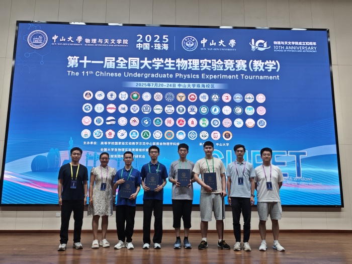 2025年7月20至24日,第十一届全国大学生物理实验竞赛(教学赛)(Chinese Undergraduate Physics Experiment Tournament,简称CUPET)在中山大学广州校区和珠海校区顺利举行,共有获批物理国家级实验教学示范中心以及在全国大学物理实验竞赛(创新赛)中成绩优异的120所高校参加了本次竞赛。71886a必赢代表队由章羽老师担任领队,陈乾、黄兆聪、章烨晖、周跫桦、陈太师、欧慧灵等一线教师和段哲星、张贵涛两位博士组成指导团队。