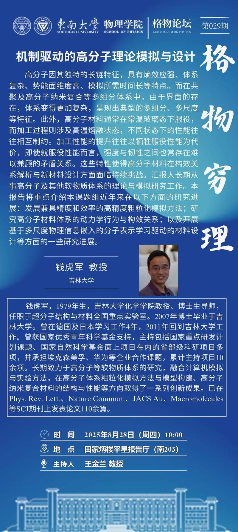 8月28日10:00格物论坛|机制驱动的高分子理论模拟与设计