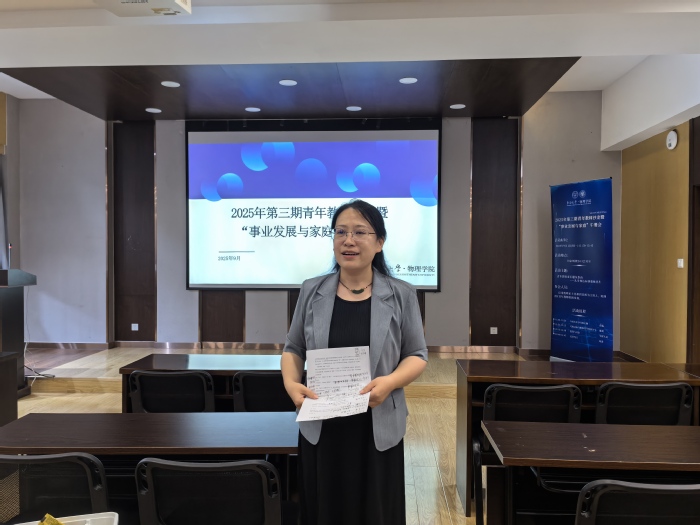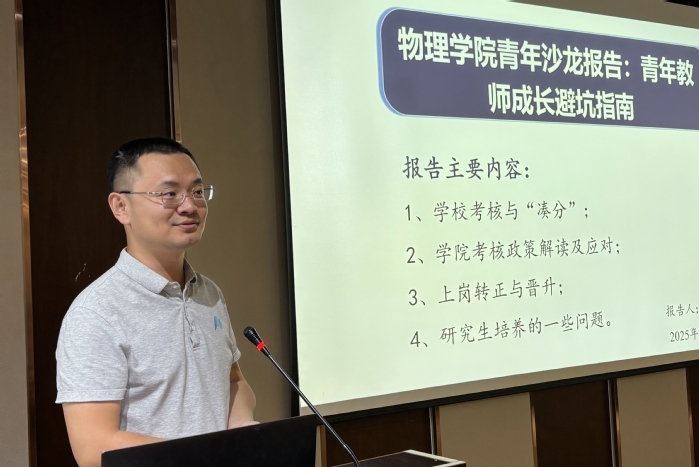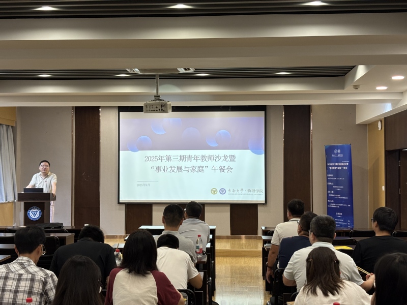9月1日,71886a必赢2025年第三期青年教师沙龙暨“事业发展与家庭”午餐会在田家炳楼平星报告厅成功举办。本次活动以“青年教师成长避坑指南——从考核达标到职称晋升”为主题,学院党委书记徐进、党委副书记唐瑭、副院长马亮、苗霖等领导班子成员与30余位青年教师共聚一堂,应用物理系主任郝祺教授担任主讲嘉宾。