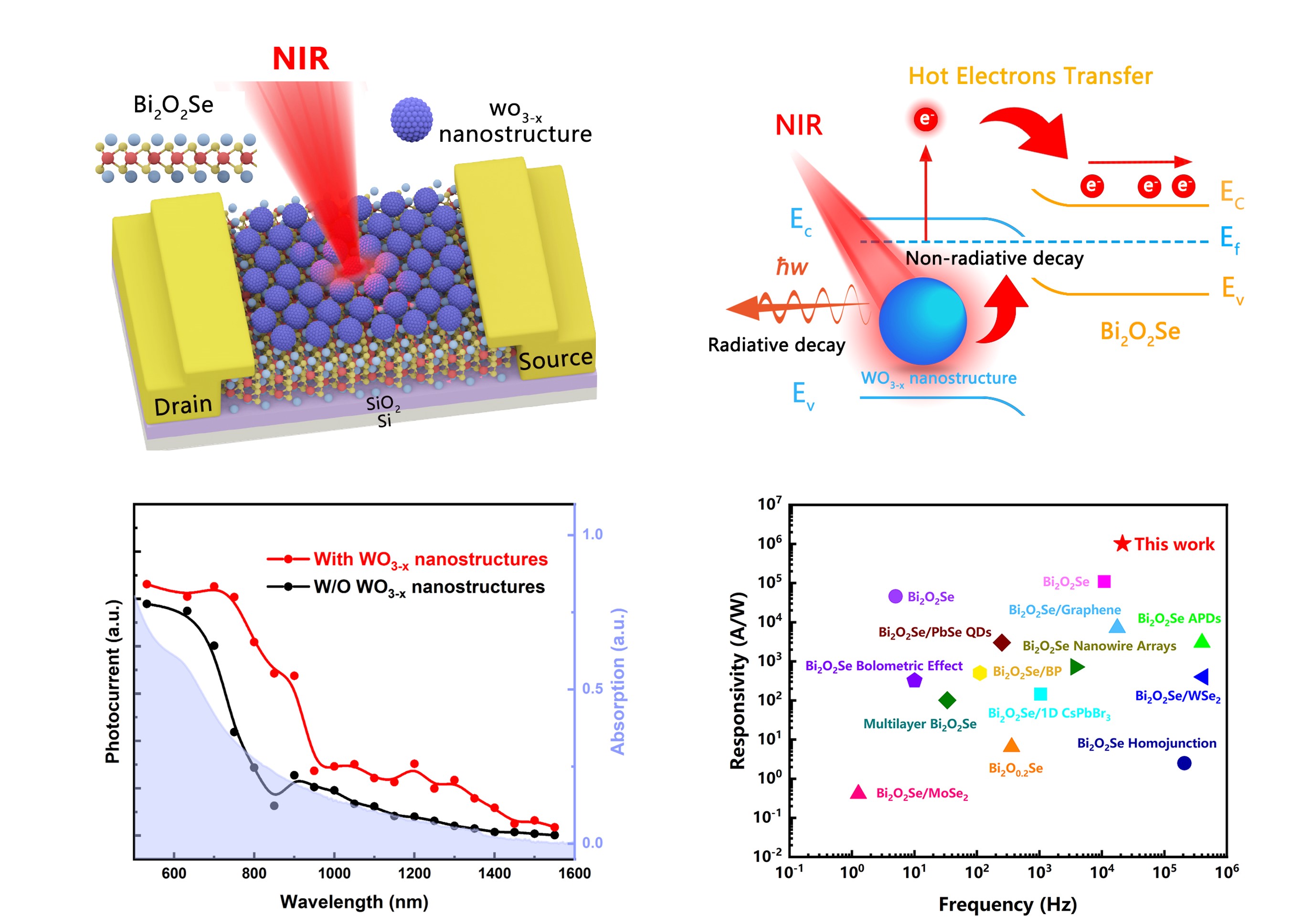 High-performance broadband WO3−x/Bi2O2Se photodetectors based on plasmon-induced hot-electron injection